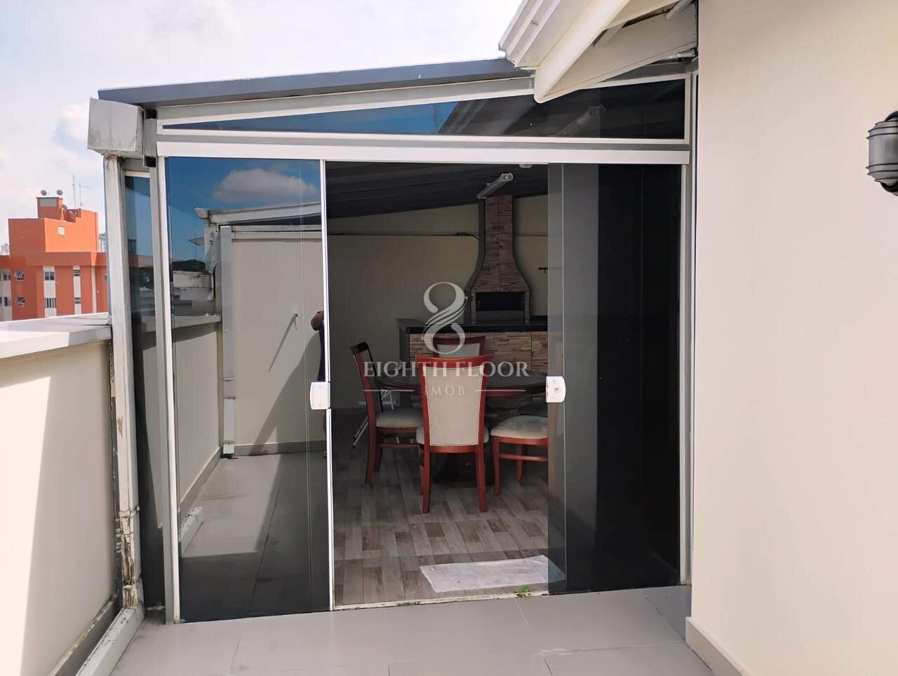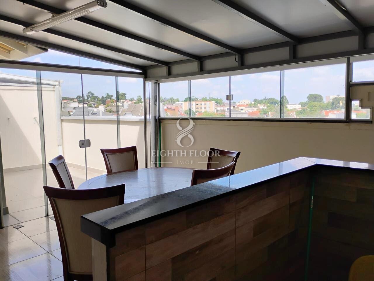 Espaço gourmet coberto e fechado com vidro