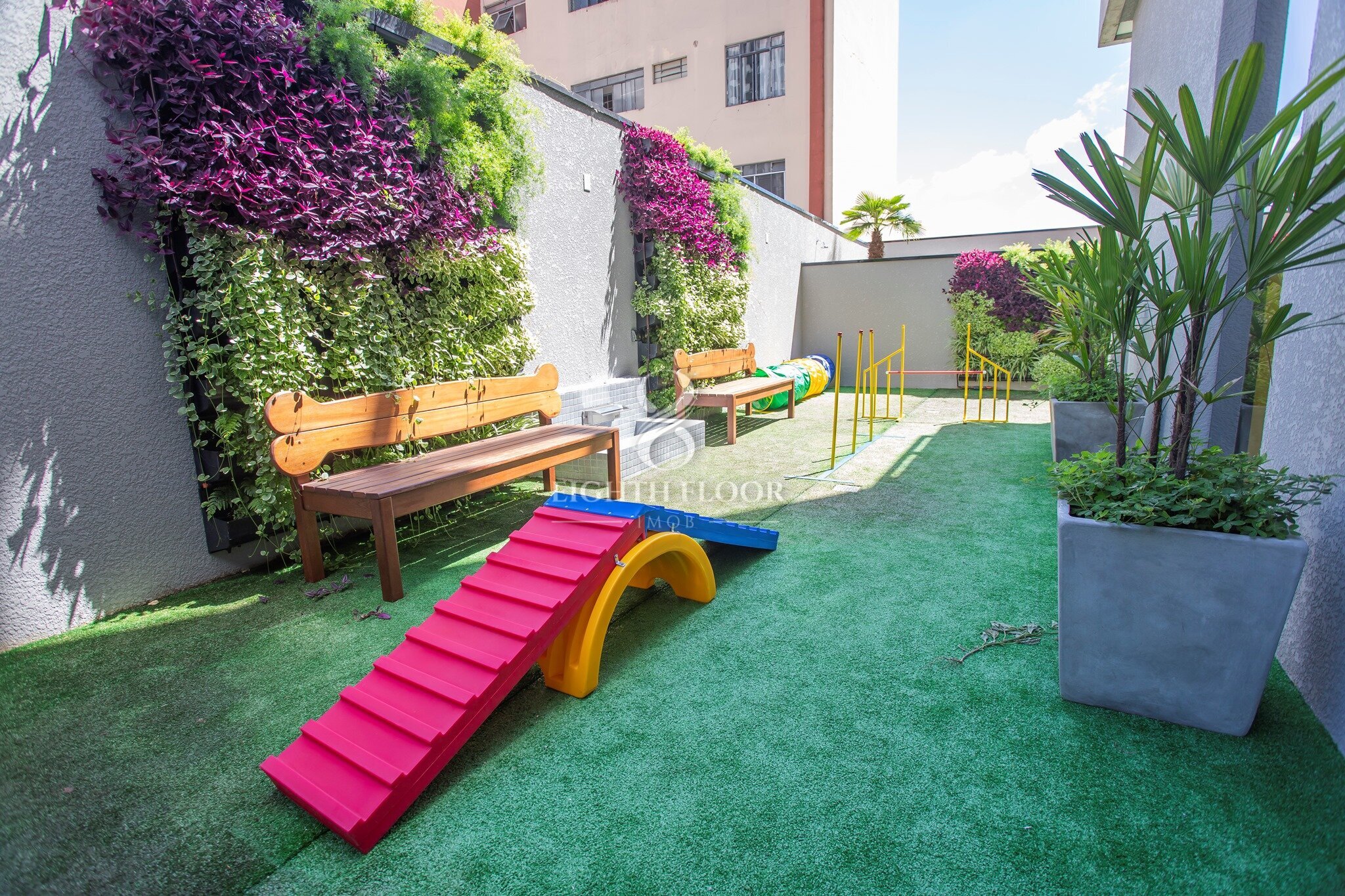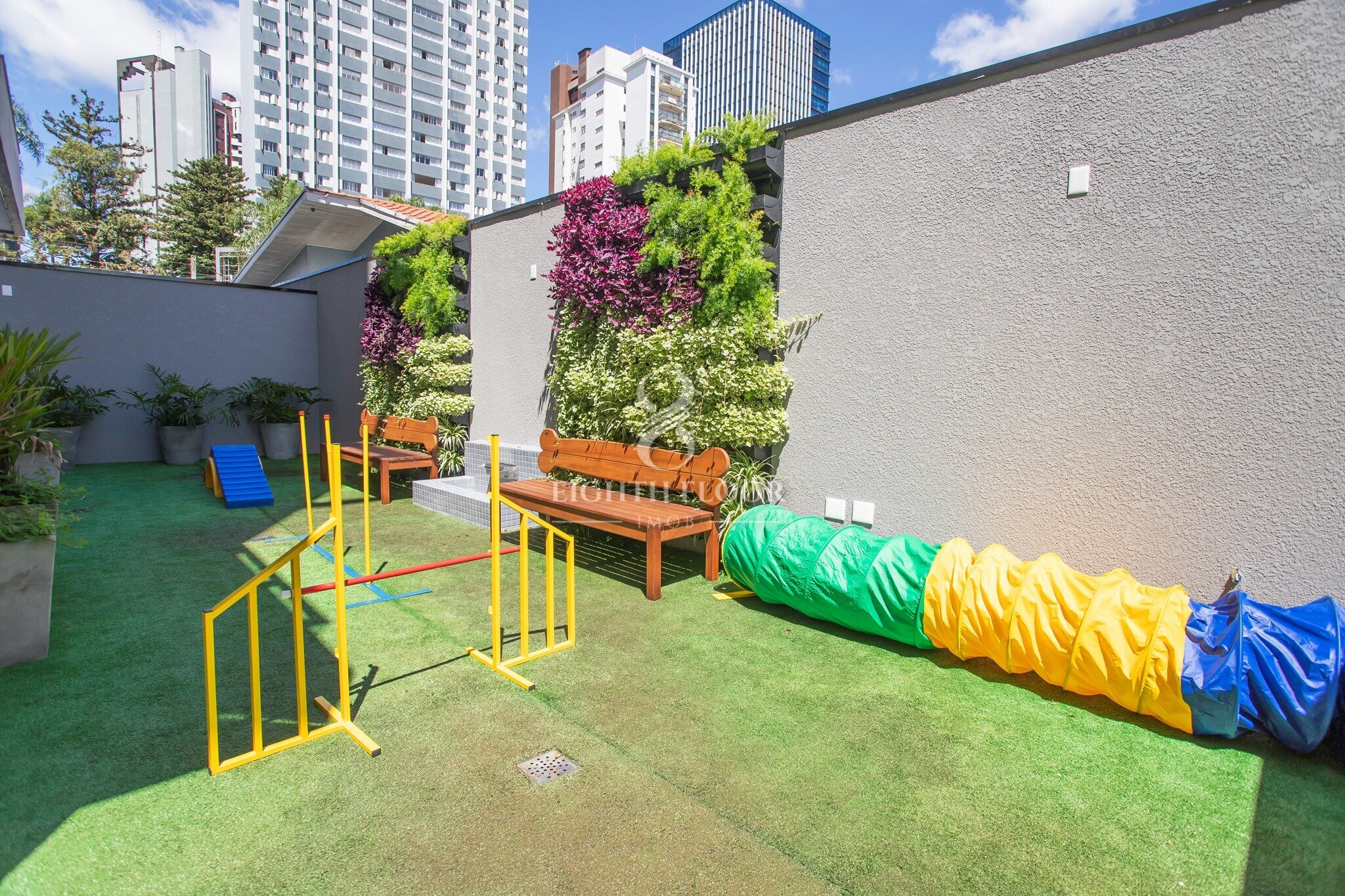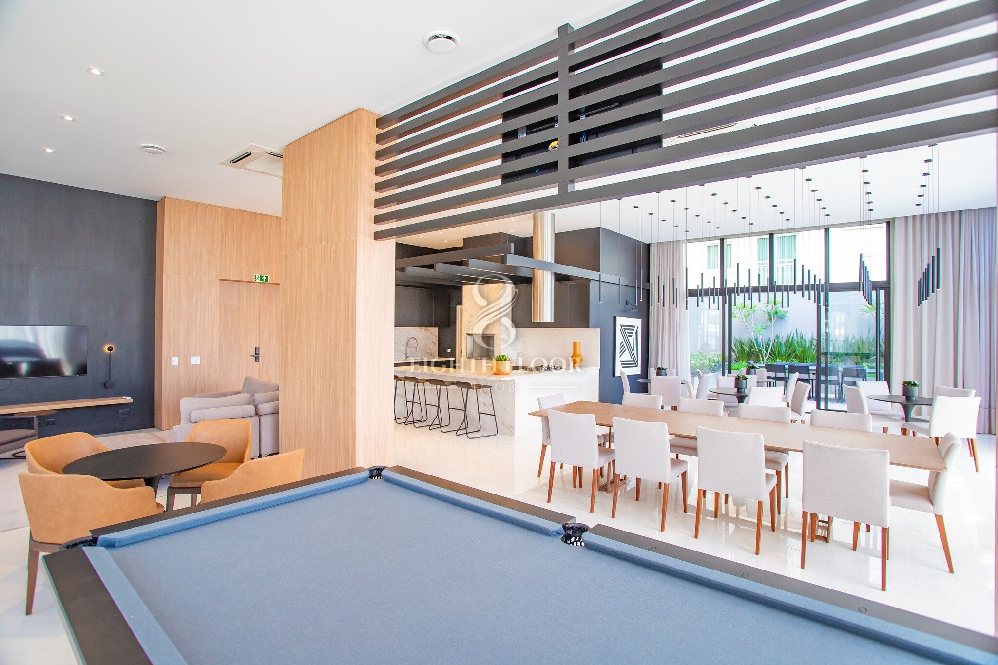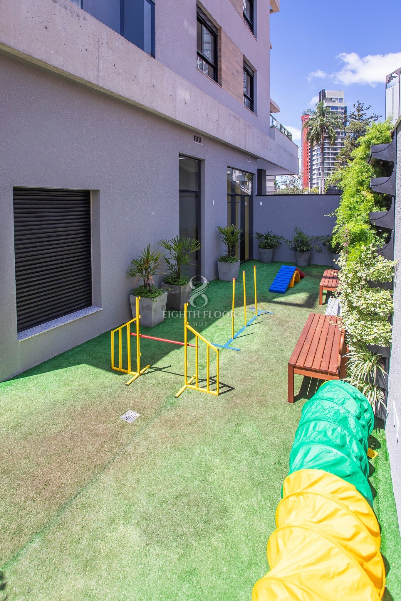 Cerca de vidro, Portaria blindada, Hall de entrada, Estacionamento para visitantes cobertas, Coworking, Vestiário para funcionários, Bicicletário, Oficina, Salão de jogos, Salão de festas, Fireplace, Espaço zen, Playground, Brinquedoteca, Academia, Academia externa, Pet care, Agility, SPA, Garagem com piso epóxi, Depósito privativo nas garagens, CFTV, Infraestrutura para carregadores de carros elétricos.