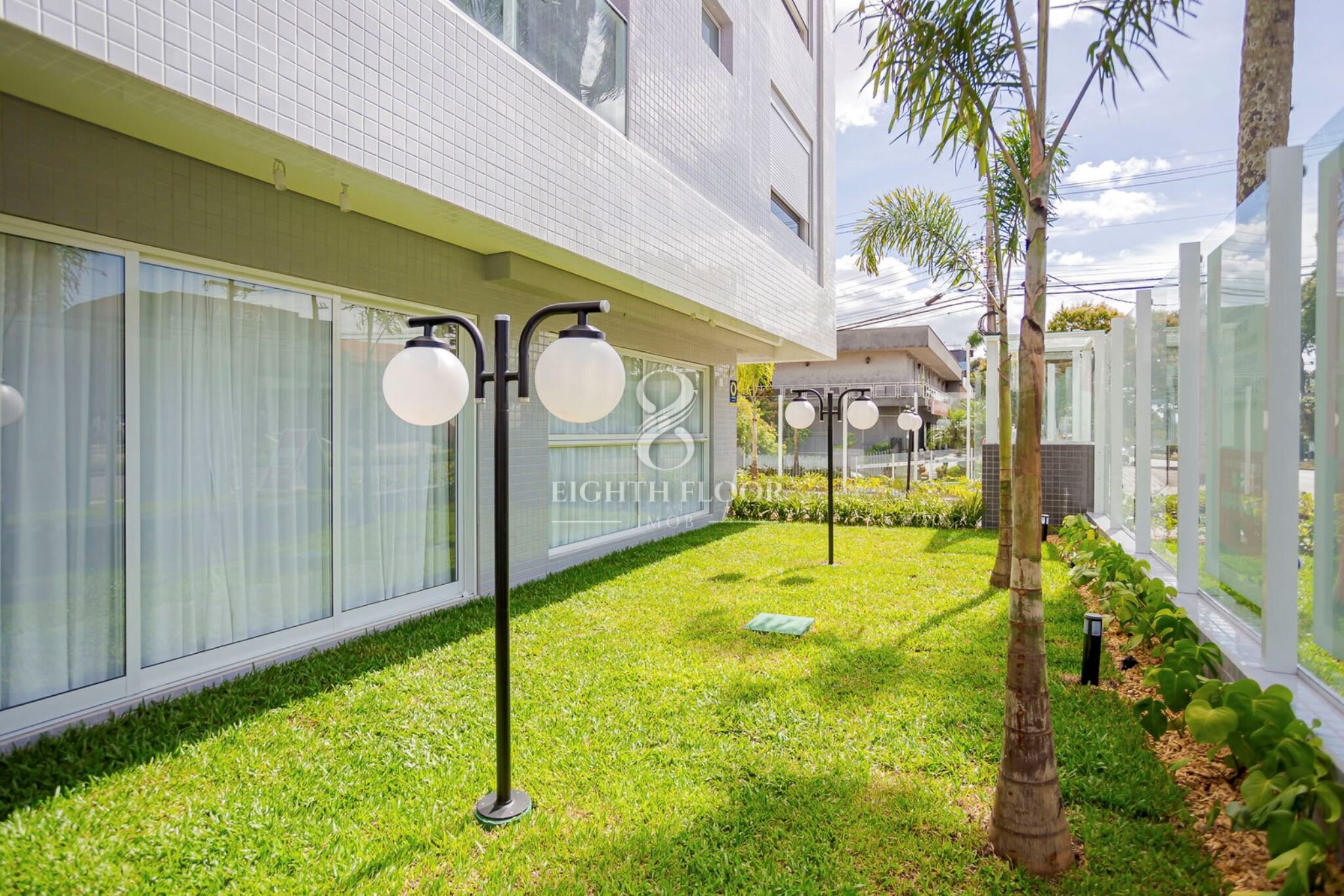 Hall de entrada, Portaria, Área de recreação descoberta, Playground, Mini quadra poliesportiva, Salão de festas com churrasqueira a carvão, Academia, Brinquedoteca, Zeladoria para funcionários, Biciclatário, CFTV, Jardim.
