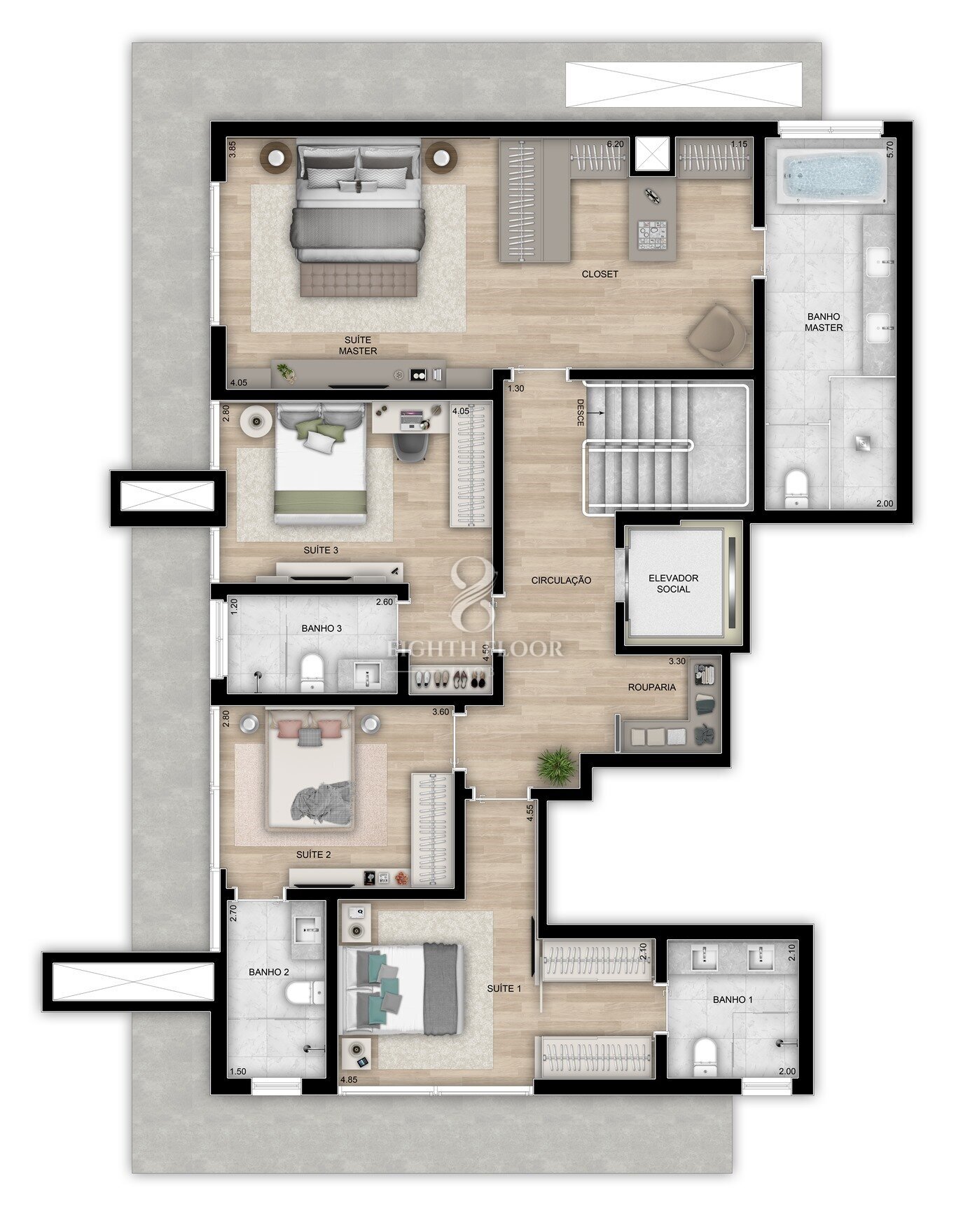 Apartamentos de 131 m² a 271 m² privativos